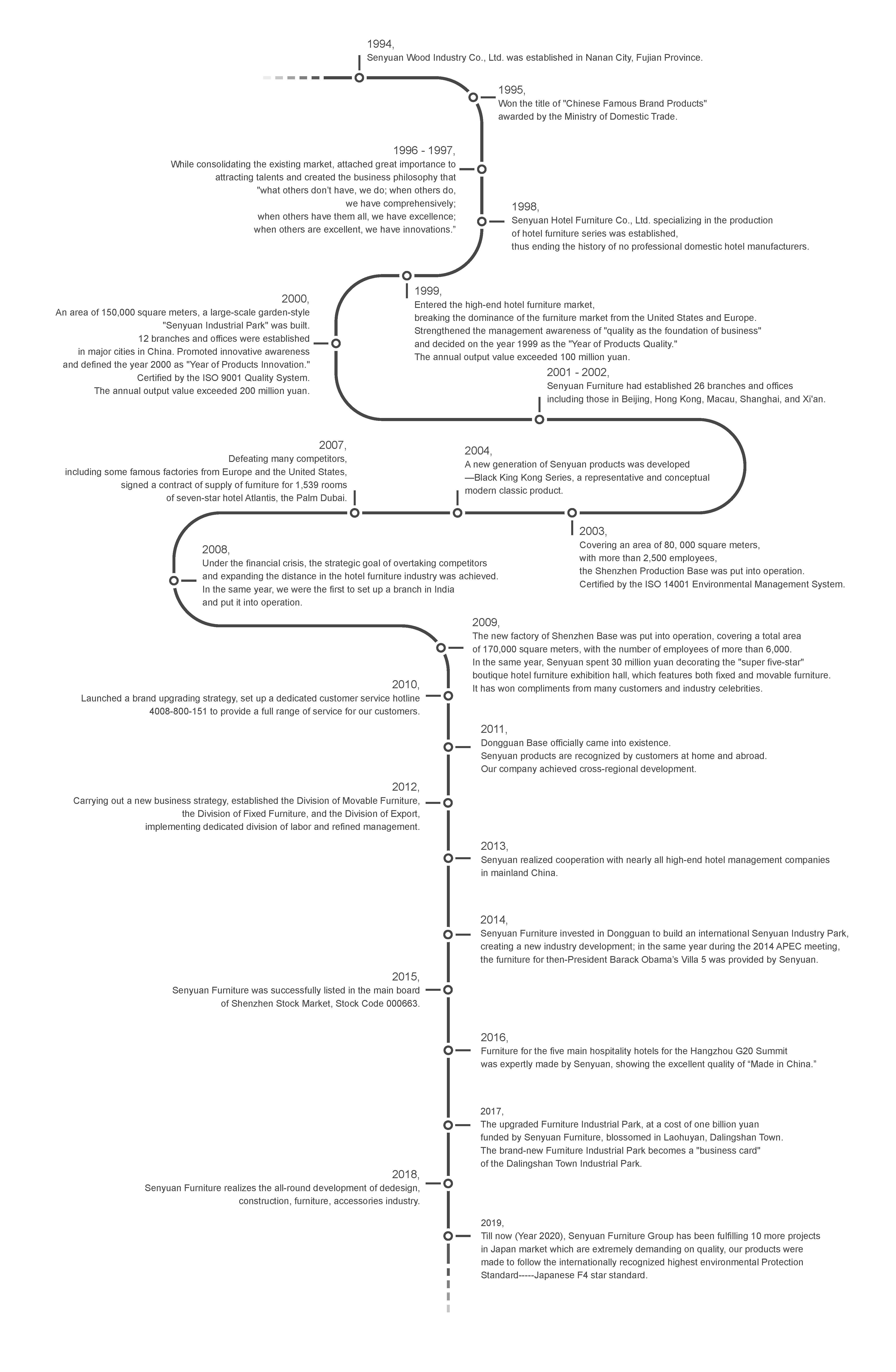 Interpretation: The core values of Senyuan focus on the dignity and value of our employees, hoping that through the work, employees can reap high-level identity. Our products are hotel furniture or fixed furniture and our customers are basically high-end investors. Because of the continuous pursuit and achievement of high-quality products, and commission to surpass customer expectations, we have had high-value recognition from our customers.